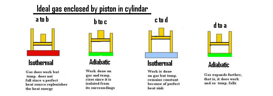 Just an aside about text books----- It is unlikely that Hoare's book will be available now and a second best is the text by E. M. Goodger " Principles of Engineering Thermodynamics". The second edition was printed in 1984 and is still widely used. A brief treatment of the Carnot Cycle is given on page 39 and is included below:=
