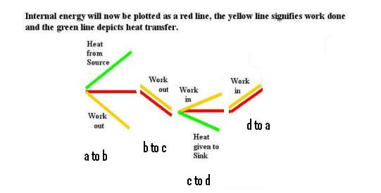 Let us think of Internal Energy first : the internal energy of, say, one's hand can be changed either by holding it infront of the fire or by someone vigorously rubbing it --- Internal energy change depends on (work done ) AND (applied heat) so for the Carnot cycle we have the diagrams