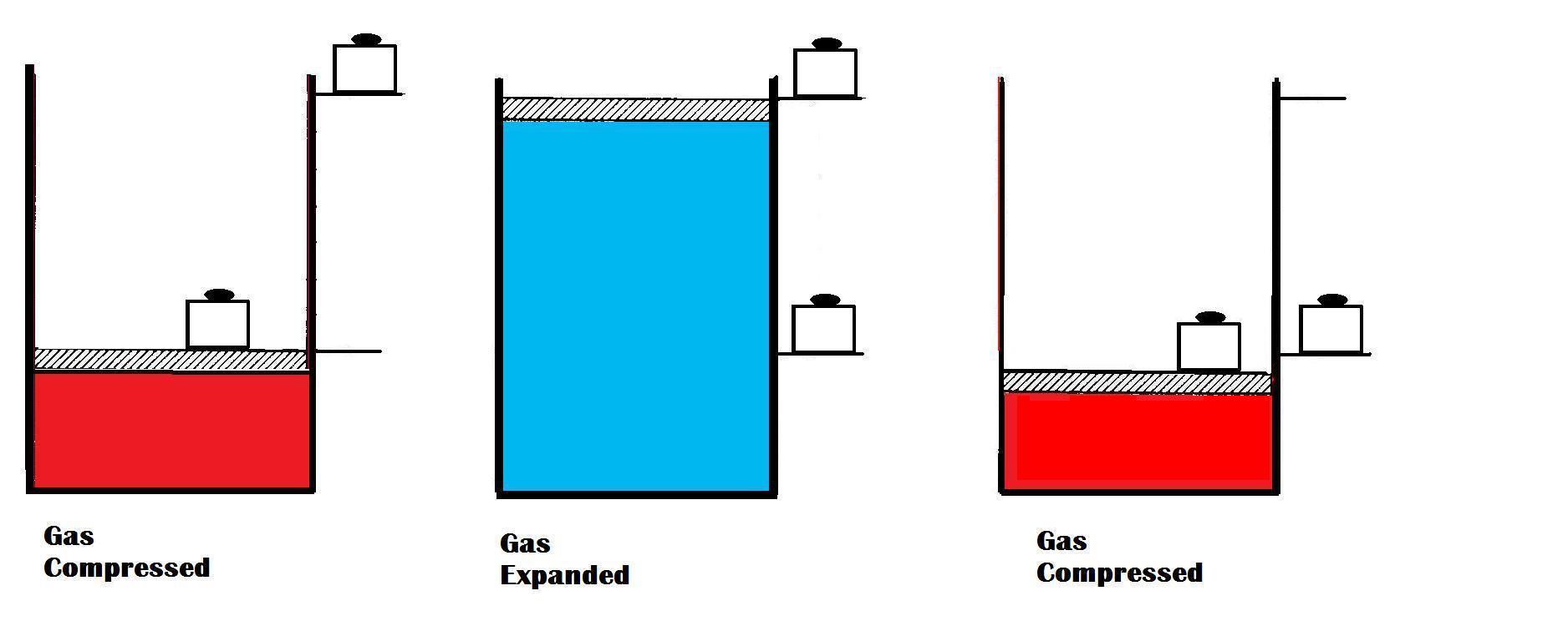 If weights are moved to the side shelves in an almost continuous manner and then replaced in the same way then we can hope for a reversible change. If, however, a single large weight is holding the piston down and this is removed it is likely that the piston will spring up and possibly oveshoot it's new stable position only to settle after an oscillating motion. Also, the piston is more likely to experience friction after such motion. Thus, when a weight is added again we may see that the piston attains a lower level and a truely cyclic motion has not been achieved.