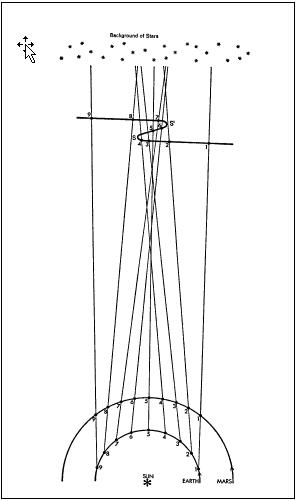 The above illustration is a modern explanation of this erratic motion in which the celestial object (in this case Mars) normally moves forward in the star field but, for several nights, will move backwards. The stationary points S and S1 indicate times when Mars exactly follows the diurnal motion of the stars and the intervals 1-2, 2-3, 3-4 etc are equal intervals of time.To explain this motion with a geocentic model of the Universe ( SUN MOVING ROUND THE EARTH) was extremely daunting and Nicholas Kopernik, better known as Copernicus, (1473 - 1543) suggested that a heliocentric view of the Universe ( EARTH MOVING ROUND THE SUN ) explained retrograde motion in a simpler manner, as illustrated above. Tycho Brahe (1546 - 1601) carried out more painstaking measurements on the orbits of all the planets and this allowed Johanus Kepler (1571 - 1630) to summarise this observational data into three laws:-