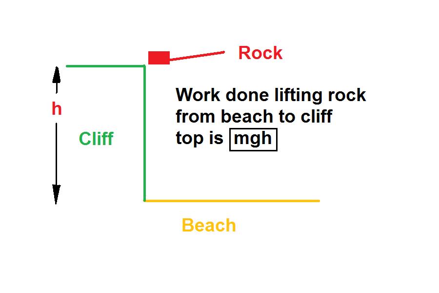 However, we can think about a much simpler example to illustrate energy at this stage by supposing we carry a rock up a cliff as shown