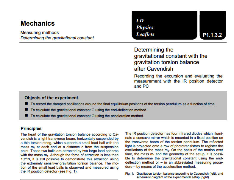 Leybold didactic have always provided apparatus of outstanding quality and their apparatus is usually used to measure G. Comprehensive leaflets are provided as illustrated:-