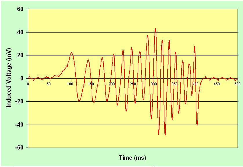 A Picoscope ADC100 is used to record the induced voltage and a "single shot" mode is used. Results are presented below and it is clear that these times could never be made with a stop watch.