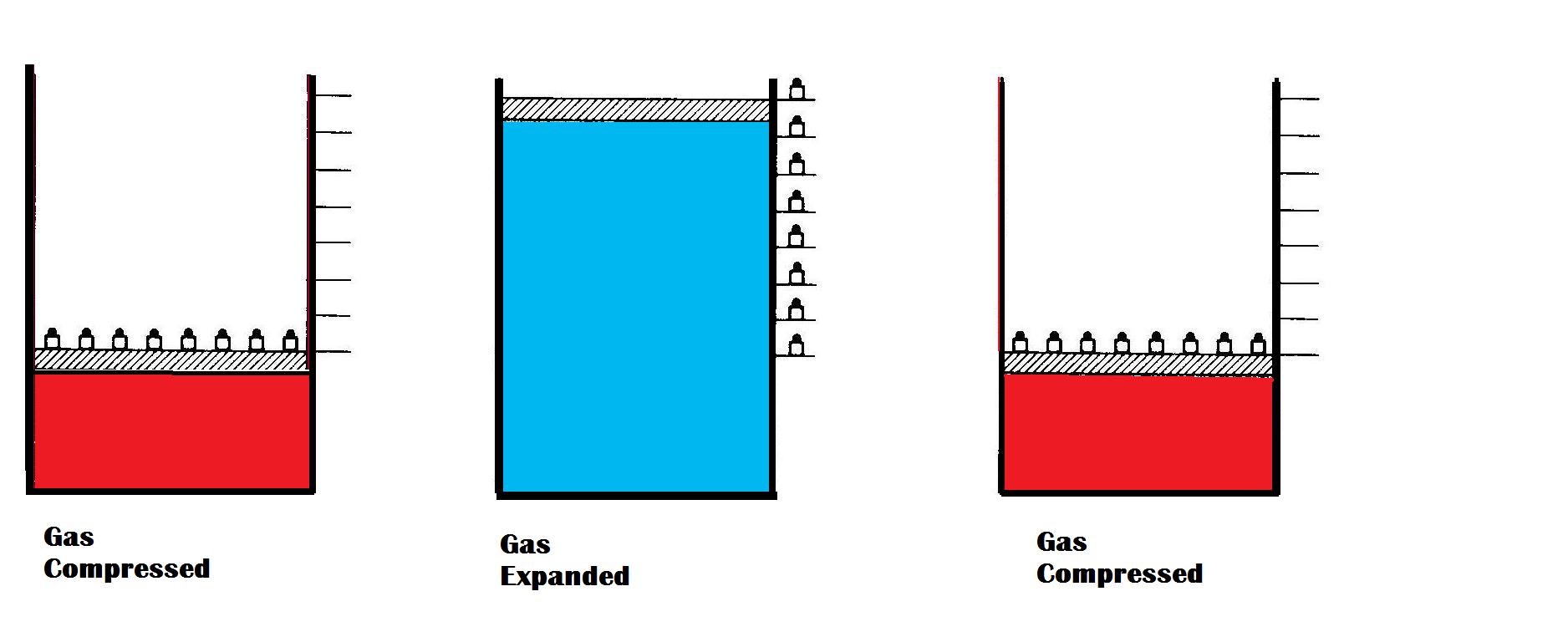 If weights are moved to the side shelves in an almost continuous manner and then replaced in the same way then we can hope for a reversible change. If, however, a single large weight is holding the piston down and this is removed it is likely that the piston will spring up and possibly oveshoot it's new stable position only to settle after an oscillating motion. Also, the piston is more likely to experience friction after such motion. Thus, when a weight is added again we may see that the piston attains a lower level and a truely cyclic motion has not been achieved.