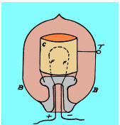 new electrode is the cylinder, C, which encases the filament. It is possible