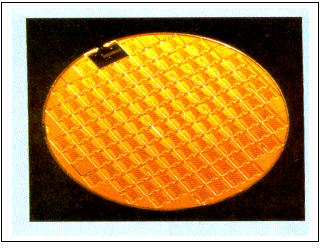 A typical wafer containing IC's is shown in figure 6 and an account of early developments of IC technology is given at www.orc.soton.ac.uk/about/earlydays/sims.php )