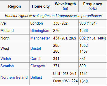 There were only a few avaible when I was searching with my crystal set, for example, Home Service transmitted on the following frequencies: