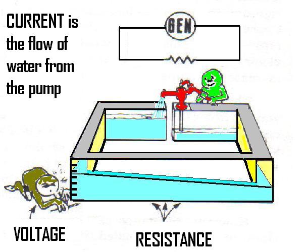 .We are now in a position to appreciate a full "circuit" with our water channel -- the pump is the battery, the channels are the wires, the sluice gate could be a switch ( either fully IN for OFF or fully OUT for ON ) and another thin section of channel for, say, a light bulb ---- WOW !! a small step in understanding electricity.