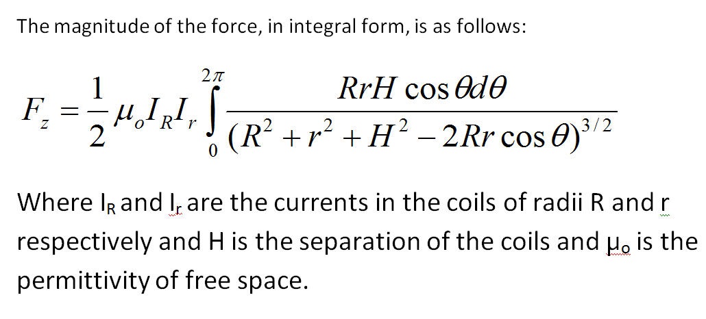 An experiment to verify this formula is very simple to set up - a magnet, a coil of wire (150 turns, enamelled copper, diam 1mm) through which a current is passed and a balance for weighing the coil: