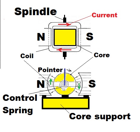 The great advance that came from this equation was that instruments could be made that allowed currents and voltages to be measured. The diagram of such a moving coil meter is given below