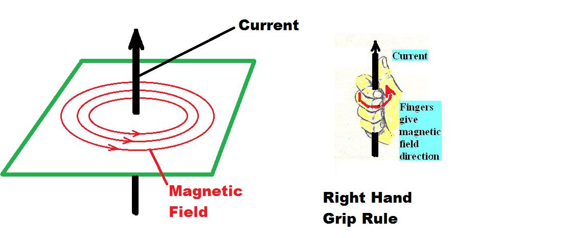 In 1820 Oersted discovered the link between currents and magnetic fields. This is illustrated below for a single wire
